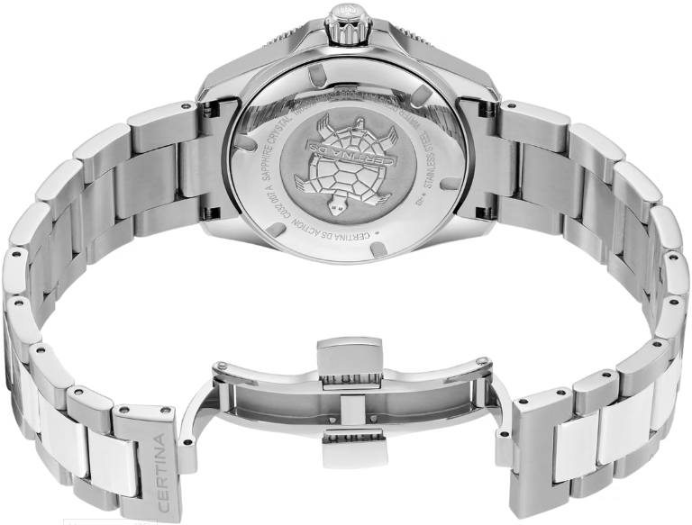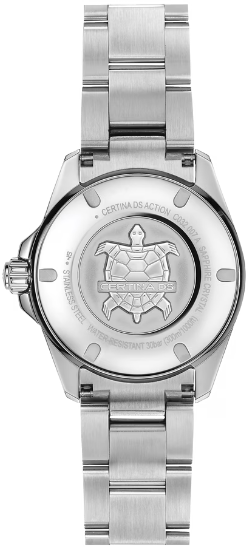 Море всегда находится в движении – как и все живое на Земле. Модель DS Action 34.5 мм станет идеальным аксессуаром для повседневной жизни – будь то занятия спортом или напряженные рабочие будни. Благодаря гармоничному диаметру 34,5 мм эти элегантные спортивные часы подойдут даже для узкого запястья. Для корпуса, браслетов и застежек своих часов марка Certina использует нержавеющую сталь 316L, отличающуюся повышенной износостойкостью, устойчивостью к коррозии и гигиеничностью. В стали содержится совсем небольшое количество никеля, поэтому этот материал не вызывает аллергии при носке. Керамика, используемая в часовом искусстве, обжигается при температуре более 900 C, что обеспечивает ее высокую прочность. Керамические безели, кабюшоны и детали браслетов марки Certina имеют не только красивый внешний вид, но обладают устойчивостью к царапинам, гипоаллергенностью и способностью долгое время сохранять первоначальную яркость и блеск. Super-LumiNova (SLN) представляет собой cветящийся материал с фосфоресцирующими свойствами. В темноте SLN типа BG W9, который использует Certina, испускает свет в виде голубого мерцания. SLN не вредит здоровью и используется для нанесения на стрелки, индексы и безели. В темноте он через некоторое время теряет свои фосфоресцирующие свойства, но они автоматически восстанавливаются на свету. Сапфировое стекло состоит из порошка оксида алюминия (Al2O3), раскаленного до 2.000 C. Получаемые в результате сапфировые пласты нарезаются на тонкие пластины, им придают требуемую форму и полируют. Сапфир абсолютно прозрачен, обладает высокой устойчивостью к царапинам и механическим повреждениям. По этим причинам сапфировое стекло стало неотъемлемой деталью концепции DS и используется во всех моделях Certina для защиты циферблата. Вес 125 гр. Водонепроницаемость 30 бар (300 м). Диаметр корпуса 34.5 мм. Толщина 11.9 мм. Между креплениями 18 мм. Механизм ETA с запасом хода 80 часов и сплавом Nivachron. Спирали баланса созданы из инновационного титанового сплава. Этот революционный материал был создан при сотрудничестве с компанией Swatch Group и используется лишь ограниченным числом брендов. Пружины Nivachron обладают повышенной устойчивостью к воздействию электромагнитных полей, ударам, старению материалов, экстремальному перепаду температур, выводят часы на совершенно новый уровень точности и обеспечивают долговечность аксессуара.