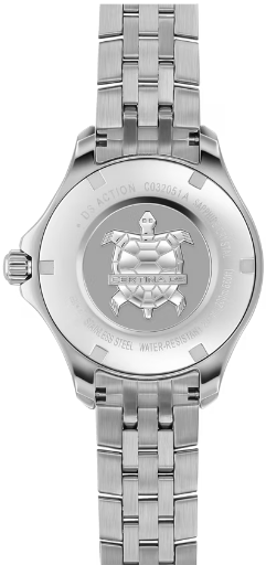 Модель DS Action Lady – не просто красивый аксессуар. Ее кварцевый калибр Precidrive получил официальный сертификат хронометра престижного института тестирования COSC. Кроме того, эти часы обладают водонепроницаемостью до 20 бар. Не стоит их недооценивать: изысканный внешний вид – это не единственное достоинство данных часов. Для корпуса, браслетов и застежек своих часов марка Certina использует нержавеющую сталь 316L, отличающуюся повышенной износостойкостью, устойчивостью к коррозии и гигиеничностью. В стали содержится совсем небольшое количество никеля, поэтому этот материал не вызывает аллергии при носке. Сапфировое стекло состоит из порошка оксида алюминия (Al2O3), раскаленного до 2.000 C. Получаемые в результате сапфировые пласты нарезаются на тонкие пластины, им придают требуемую форму и полируют. Сапфир абсолютно прозрачен, обладает высокой устойчивостью к царапинам и механическим повреждениям. По этим причинам сапфировое стекло стало неотъемлемой деталью концепции DS и используется во всех моделях Certina для защиты циферблата. Вес 96 гр. Водонепроницаемость 20 бар (200 м). Диаметр корпуса 33.8 мм. Толщина 9.13 мм. Между креплениями 15 мм. Кварцевый механизм F06.411 ETA с функциями PrecidriveTM, индикатором окончания срока службы элемента питания и хронометром. PrecidriveTM - название инновационной технологии, обеспечивающей исключительную точность хода изделий Certina: Точность часов с кварцевым калибром Precidrive может сравниться с хронометрами. Часы Precidrive с погрешностью до +/-10 секунд в год в 8–10 раз точнее обычных кварцевых часов. Некоторые кварцевые часы Certina – как, например, все модели Precidrive, будь то вариант с тремя стрелками или хронограф – имеют указатель окончания срока службы элемента питания (EOL). Эта функция позволяет узнать, когда завершится срок службы элемента питания: В этом случае секундная стрелка движется с интервалами в 4 секунды, и элемент питания необходимо заменить в течение двух недель. Хронометрами имеют право называться только те часы, которые прошли сложные проверки независимой комиссии и получили сертификат точности. Организация «Contrôle officiel suisse des chronomètres», коротко «COSC», это официальная швейцарская комиссия, сертифицирующая как механические калибры, так и кварцевые часы. Считается, что король всех драгоценных камней, бриллиант, является самым тведым природным материалом в мире. Качество бриллиантов определяется по «четырем C»: Cut (огранка): Чем больше граней, тем интенсивнее камень отражает свет. Certina использует бриллиантовую огранку, полную - для бриллиантов на корпусах часов, и простую - для бриллиантов на циферблате. Colour (цвет): На первый взгляд кажется, что все бриллианты белые. Однако, эксперты различают тонкие оттенки цвета. Certina использует только бриллианты цвета Top Wesselton. Clarity (прозрачность): Почти все бриллианты имеют небольшие включения, которые можно увидеть через ювелирную лупу. Certina использует камни высокого класса прозрачности - VSI. Carat (карат): Единица веса бриллианта. Один карат равен 0,2 г. Certina использует только бриллианты, отвечающие требованиям Кимберлийского процесса - международной системы сертификации необработанных алмазов. Система призвана остановить торговлю контрабандными алмазами – так называемыми «кровавыми бриллиантами».